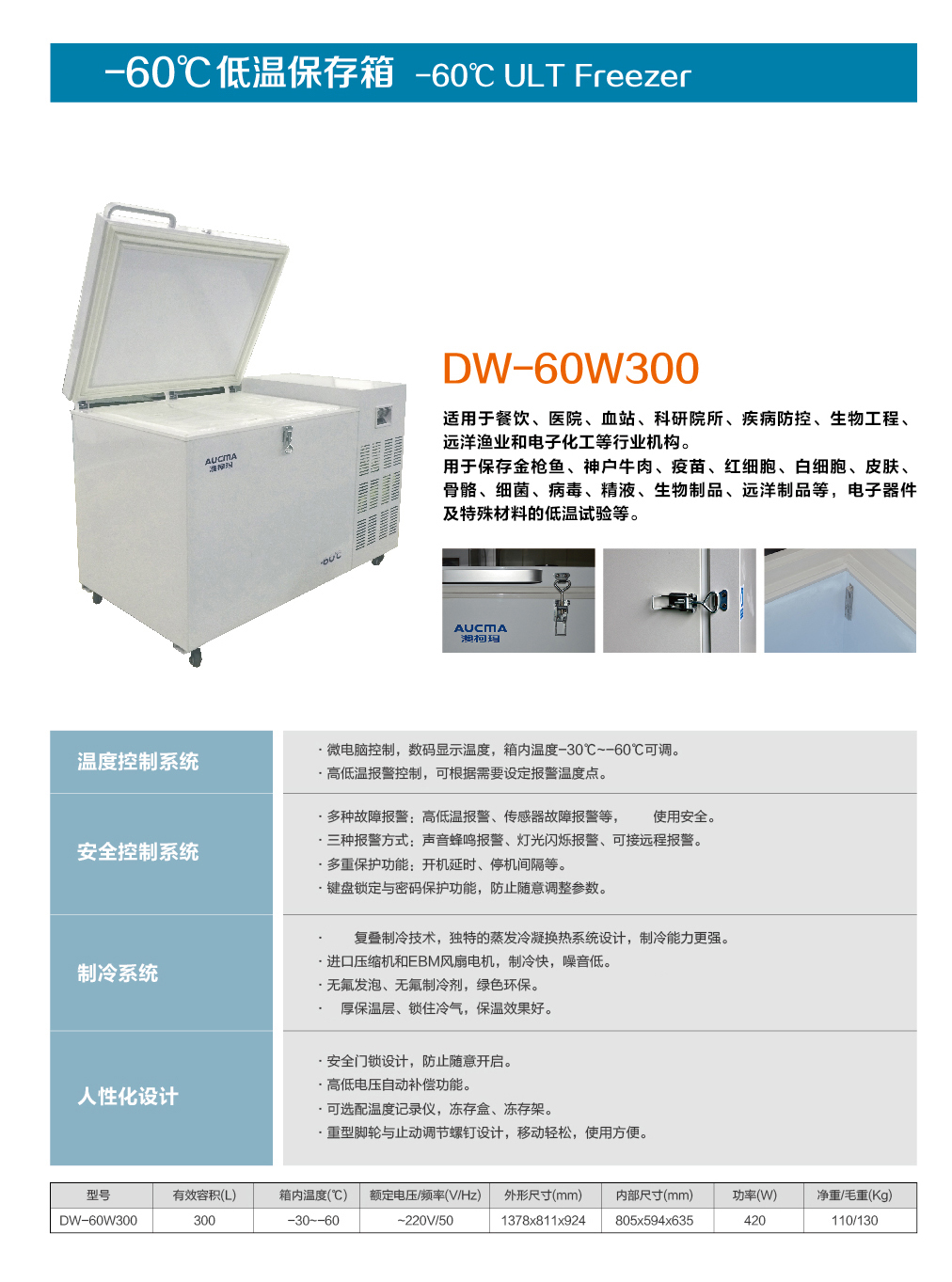 澳柯瑪DW-60W300 300升-60度低溫冷柜 臥式超低溫冷凍冰箱產(chǎn)品介紹